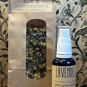 Voor het energetisch reinigen van aura’s, ruimte en magische overgangen. Bevat; Spray energetisch met edelsteentje, bijvoet wierook met kooltjes en een roll on parfum bijvoet.