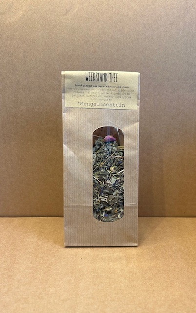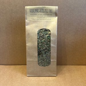 Onze kruidenthee wordt handmatig, in het seizoen geplukt. Daarna zorgvuldig gedroogd en versneden tot makkelijk gebruik. Ingredienten; Dennennaald (geplukt op de Veluwe)braamblad framboosblad tijm rozemarijn anijs salie vlierbloesem gentiaan korenbloem venkel eucalyptus munt en weegbree